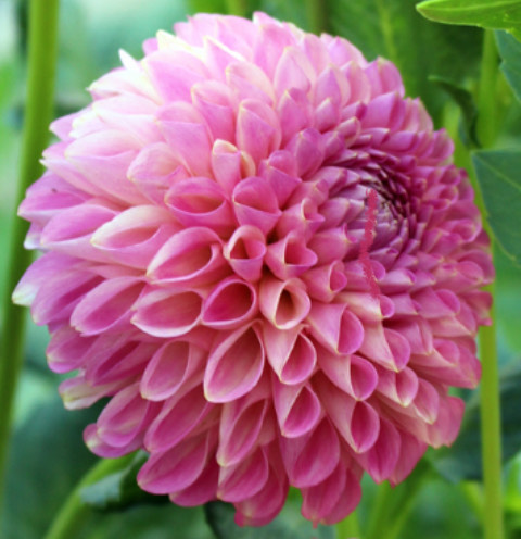 A medium sized pom that is dusky lavender pink. Very sweet and productive. 3 pack tubers