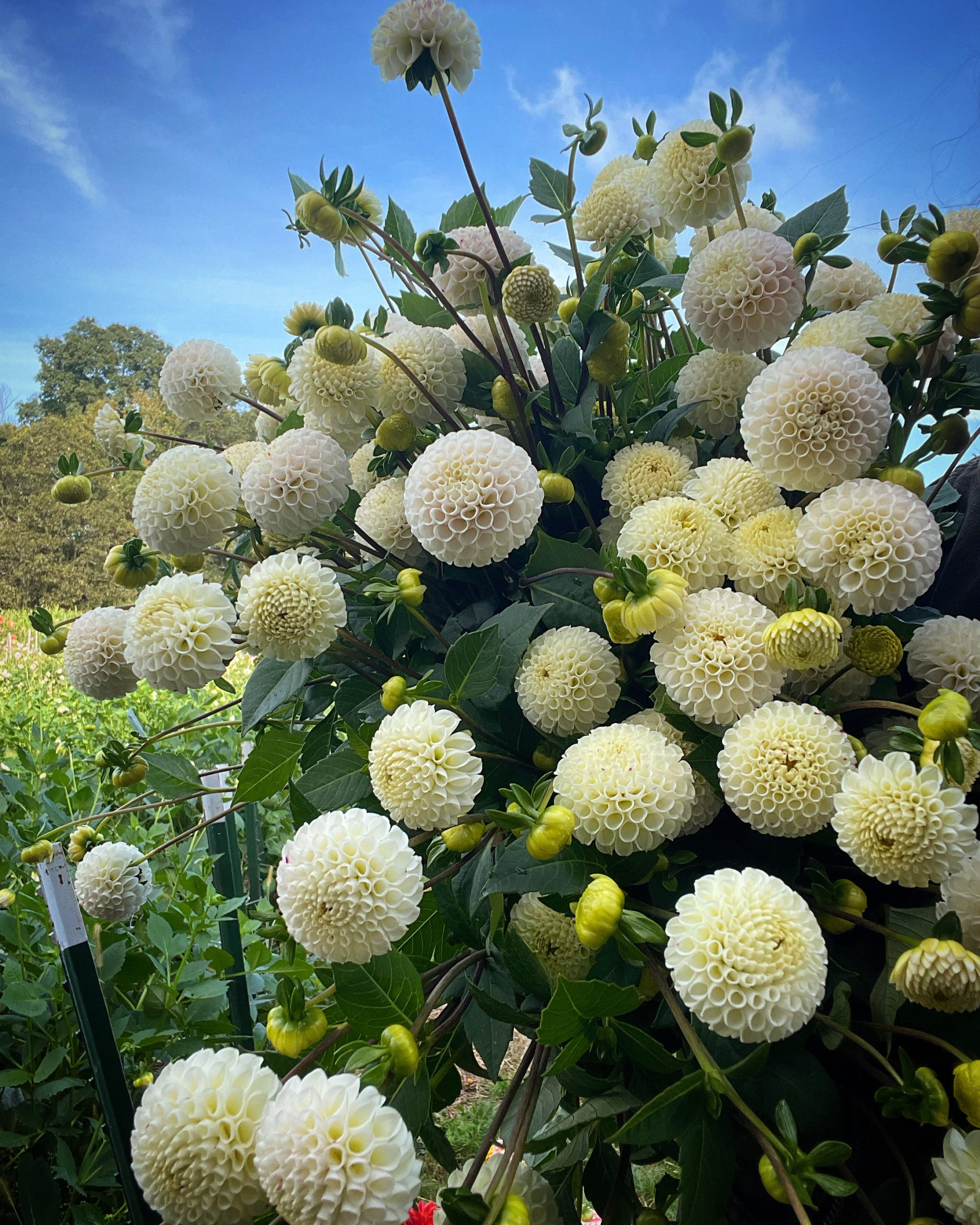 White with occasional soft blushing and small heads, looks very similar to golf ball size. Later producer for us. A florists favorite. 3 pack tubers
